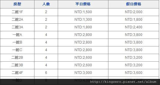 右列房型資料及價格僅供參考,請訂房前務必先與民宿確認價格!